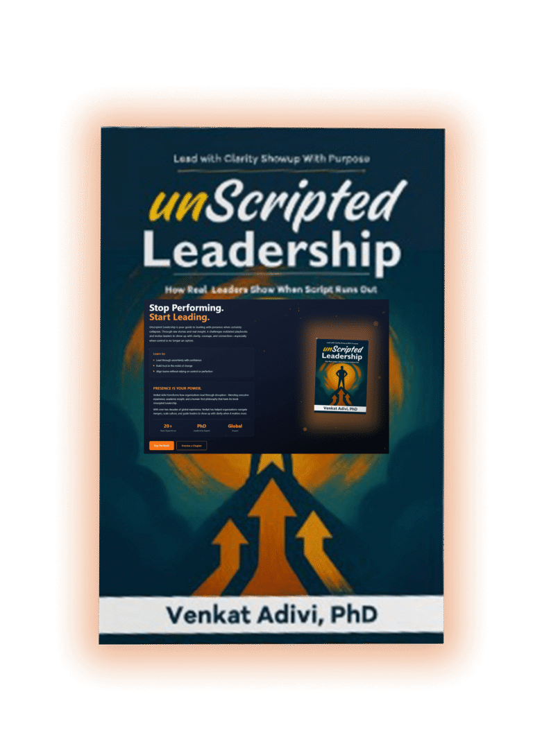 Venkat Adivi transforms how organizations lead through disruption-blending executive experience, academic insight, and a human first philosophy that fuels his book Unscripted Leadership.